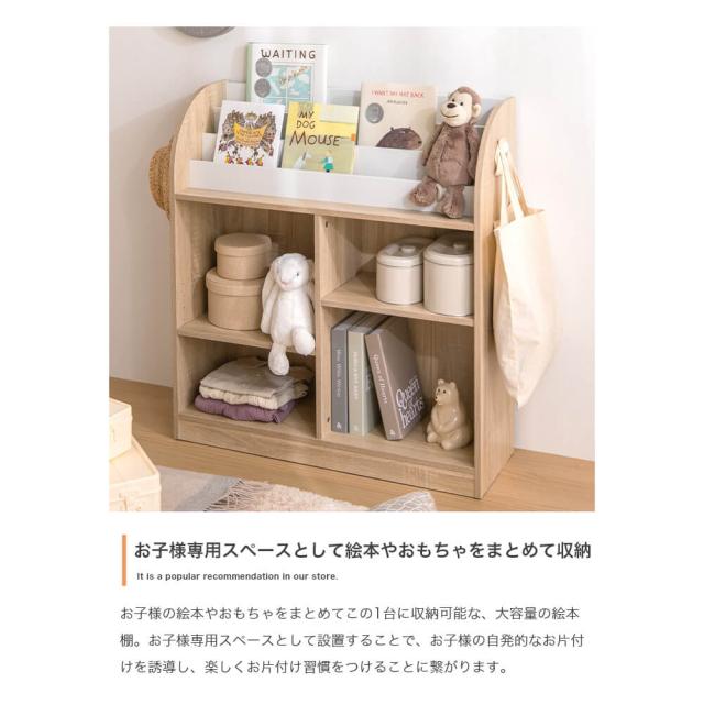 お子様の絵本やおもちゃをまとめてこの1台に収納可能な、 大容量の絵本棚。
