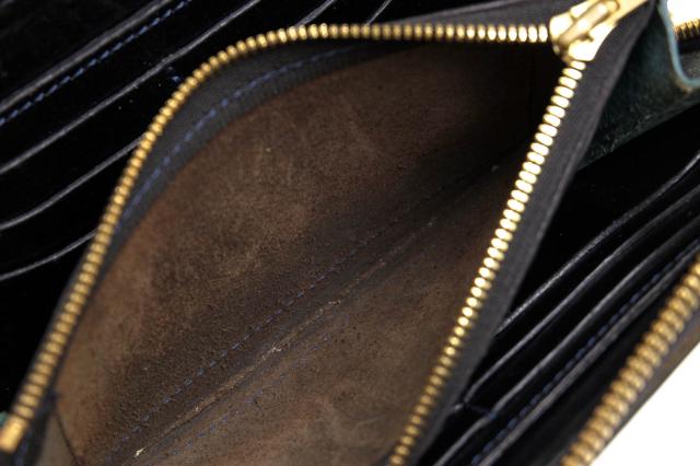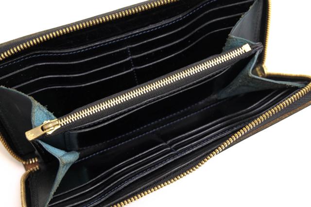 イタリア産のサドルプルアップレザーを使用、オイルをたっぷり染み込ませており柔軟性がある仕上がりです。ラウンドファスナータイプなので、ジッパーを開けたら全ての収納部が見渡すことができ収納力も抜群。使い込む程に光沢感が増し経年変化をお楽しみいただけます。