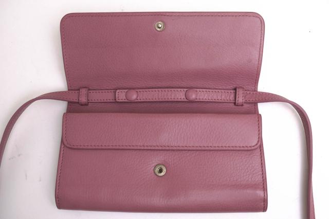 お財布としてまたクラッチバッグとしてショルダーを二重にして肩掛け、斜めがけなどマルチにご使用いただけるお財布ショルダー。ショルダーはボタンで長さ調節でき、スマートフォンや小銭入れなど収納できます。
