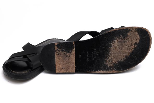 スターのウェルティングがアクセントになった大人のラグジュアリーなサンダル。レザーのソールには極細なゴールドでトリミング。上質なカーフレザーを用いており、コーディネートを格上げしてくれます。