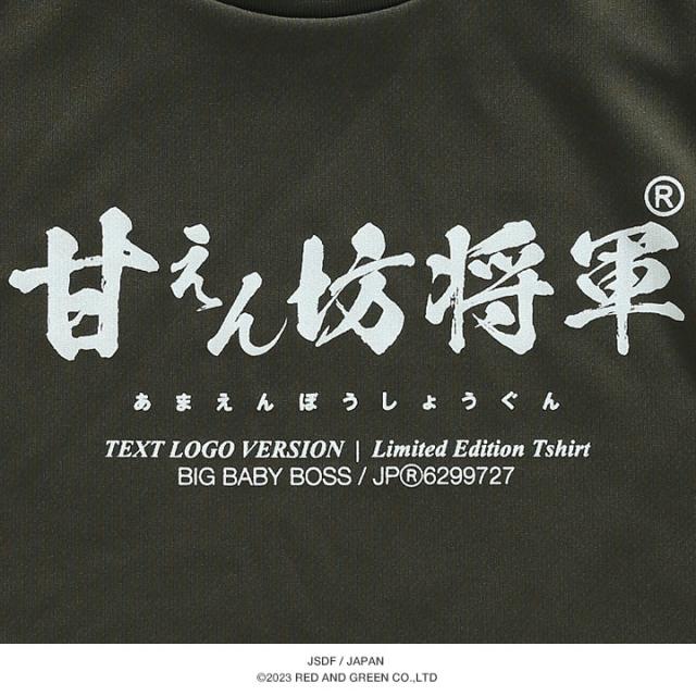 陸上自衛隊をイメージしたOD色のTシャツに、シンプルでインパクトのあるブランドロゴの『甘えん坊将軍®』(登録商標)をオン。左袖には、「日章/日の丸」のミニワッペンを施しています。