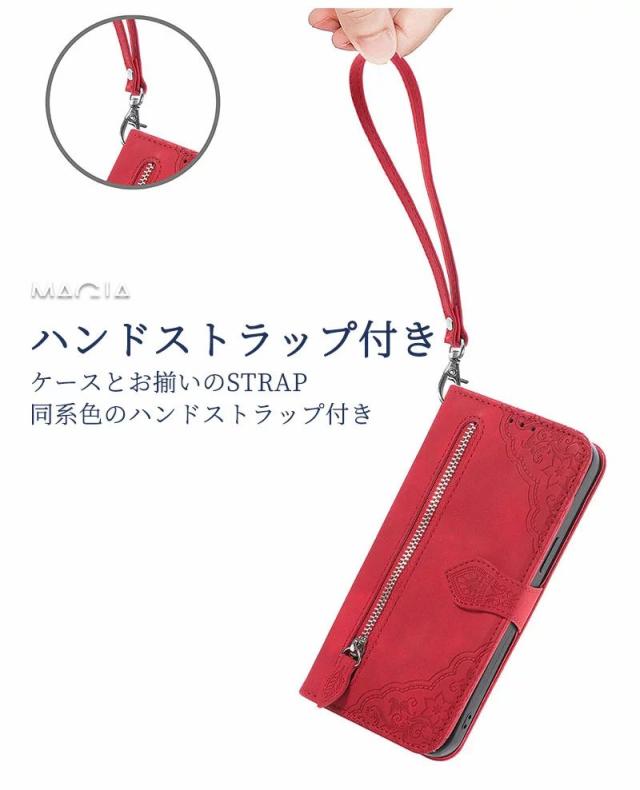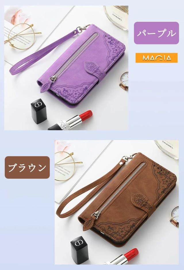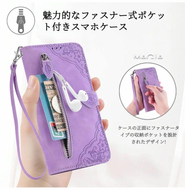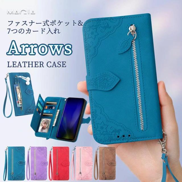 富士通 Fujitsu arrows We2 Plus F-51E ケース 手帳型 アローズ N F-51C F-41B F-41A F52A 携帯ケース らくらくフォン F-52B F-42A 手帳型 スマホケース カバー ジッパー ファスナー ポケット ハンドストラップ付き 花柄 カード入れ 財布型 耐衝撃 おしゃれ かわいい 型押し