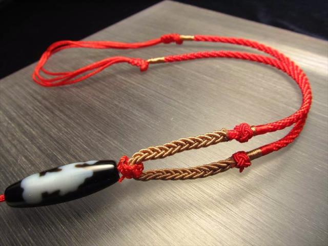 天珠 デザイン組み紐ネックレス 首周りサイズ50cm-65cm サイズ調節付き 鮮やかな赤い紐タイプ タイプC pa- パワーストーン 天然石