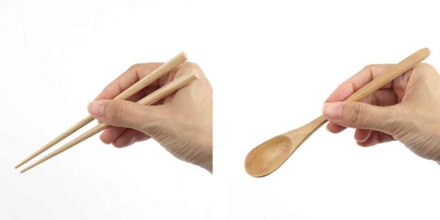 お箸とスプーンは長さで、小学生のお子様から大人の方までお使いいただけます。滑りにくく、持ちやすい木製のお箸とスプーンです。深さのあるカップスープなども手が汚れにくく、きれいに食べることができます。
