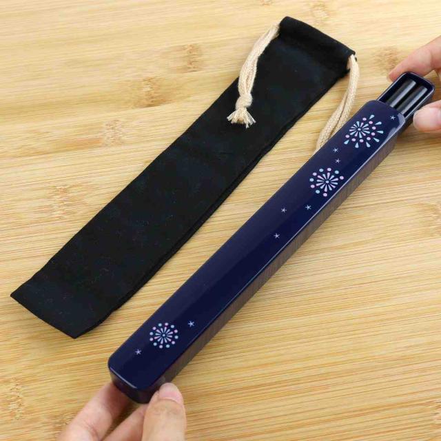 巾着付き箸箱セット 21cm 花火 ( 箸 箸箱 お箸 はし箱 セット 木製 巾着袋 お弁当用 携帯箸 女子 21センチ スライド式 天然木 弁当 お弁当 持ち運び 携帯用 女性 )