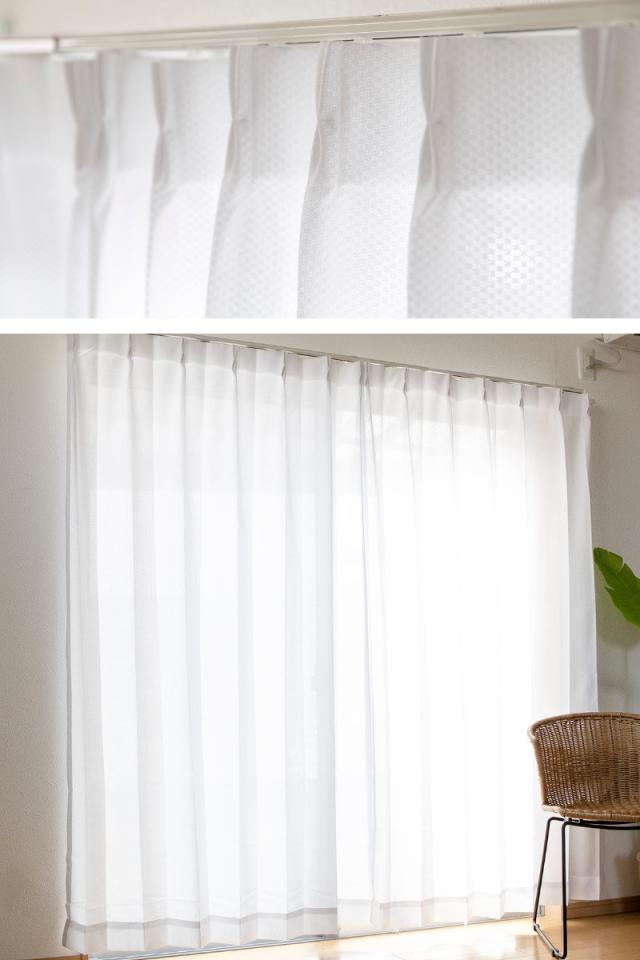 レースカーテン ライリー 2枚組 既製 幅100×高さ118〜208cm 無地 ( カーテン レース ミラーレースカーテン 既製品 ミラー 2枚 両開き UVカット 遮熱 遮像 洗える ウォッシャブル おしゃれ 白 日本製 アジャスターフック )