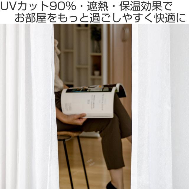 レースカーテン ライリー 1枚 既製 幅150×高さ133〜208cm リーフ ( カーテン レース ミラーレースカーテン 既製品 ミラー 片開き UVカット 遮熱 遮像 洗える ウォッシャブル おしゃれ 白 日本製 アジャスターフック )