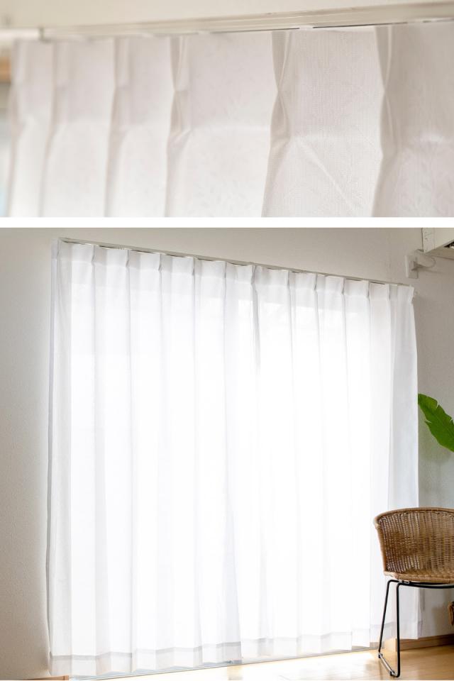ヒダ山が2つの1.5倍ヒダ仕上げでスッキリとした見た目です。カーテン1枚の幅が150cmなので、2枚お買い求めいただくことで、一般的な掃き出し窓にピッタリのサイズになります。