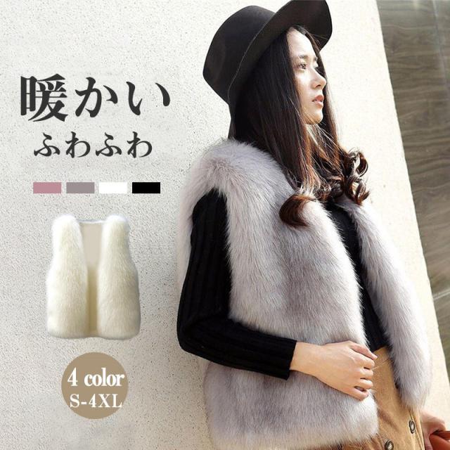 ファーベスト レディース 秋 冬 フェイクファー ショート丈 ジレ ベスト ボアベスト 毛皮コート 防寒 ブルゾン ふわふわ 暖か