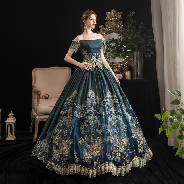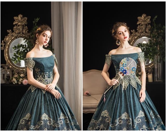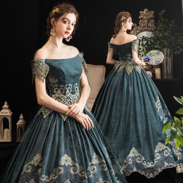 ステージ衣装 女性 オペラ 声楽 コスプレ イベント おしゃれ 宮廷服 中世 ドレス 高級 ピアノ 豪華な中世貴族風お姫様ドレス 宮廷服 刺繍 大きい裾 ロング丈 オーダーメイド dg175g4g4c6