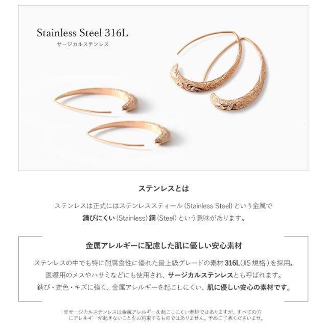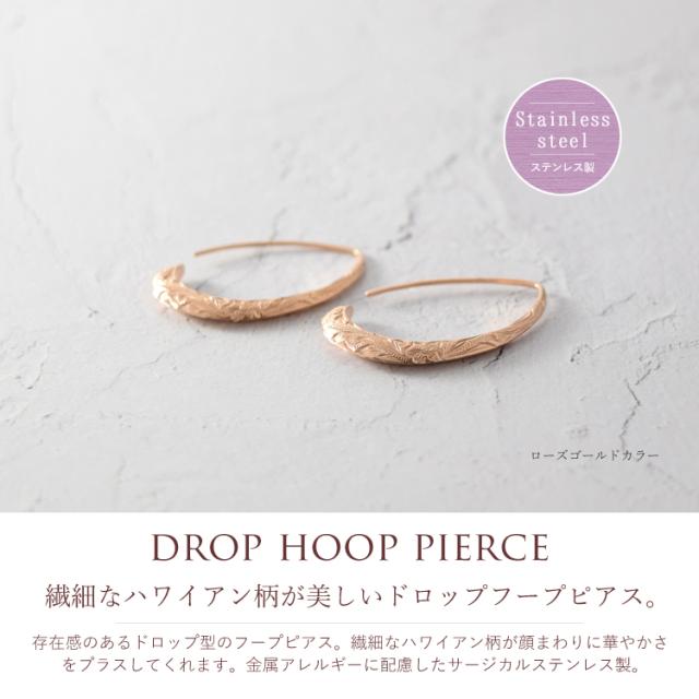 ハワイアンジュエリー ピアス フックピアス フープピアス ドロップ 金属アレルギー対応 ステンレス レディース キャッチレス ローズゴールドカラー gess323rg
