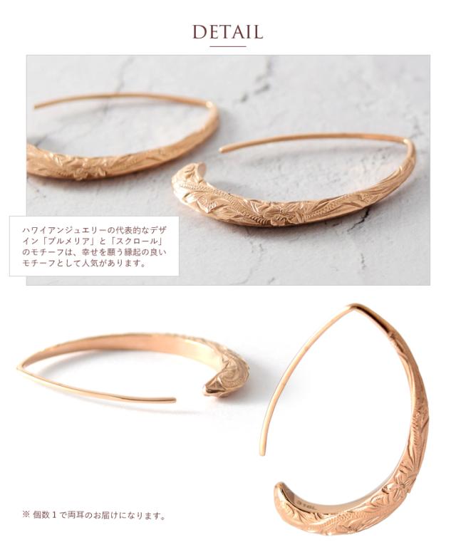 繊細なハワイアン柄が美しいドロップフープピアス。