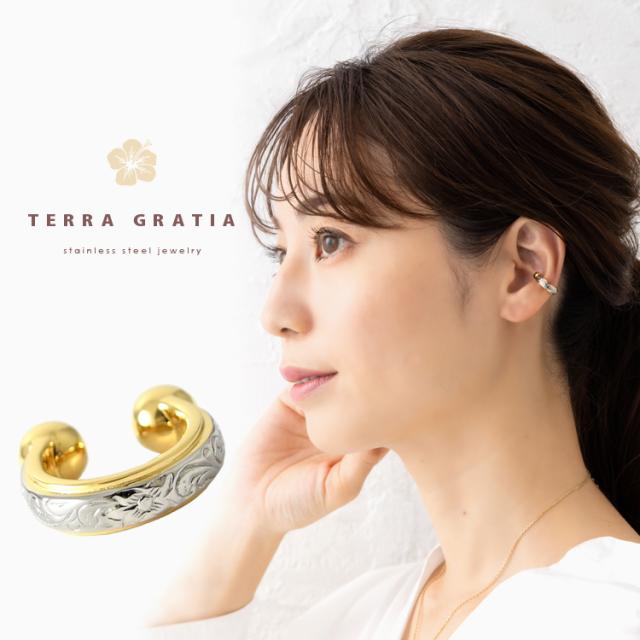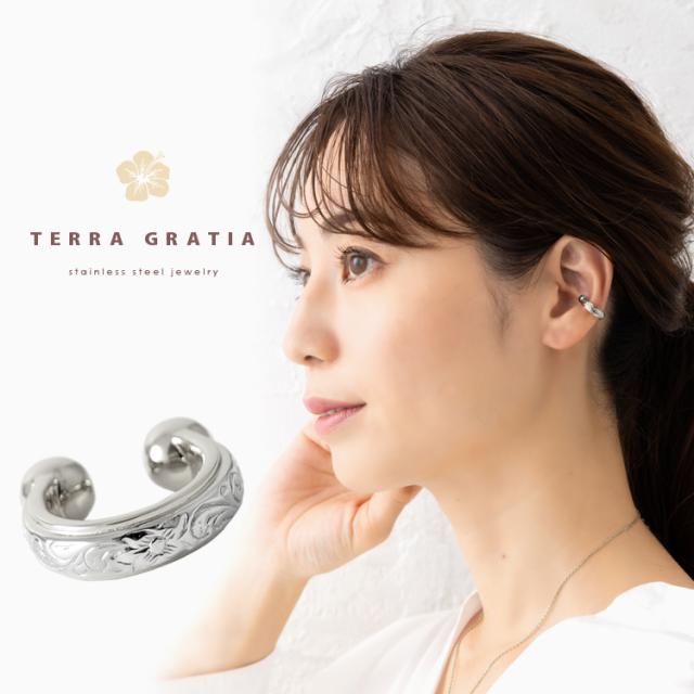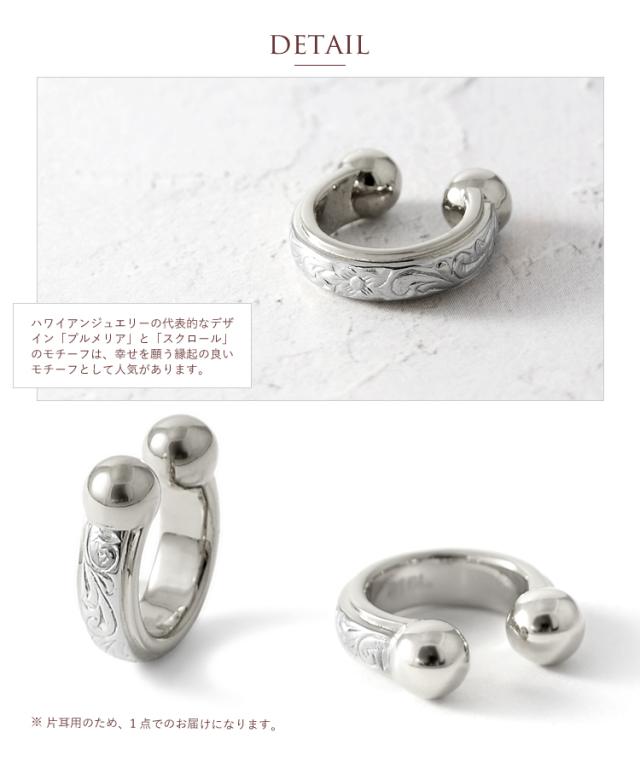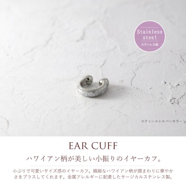 ハワイアンジュエリー イヤーカフ 金属アレルギー対応 ステンレス レディース メンズ 男女兼用 イヤーカフス イヤカフ イヤリング 片耳用 キャッチレス スティールシルバーカラー 軟骨 挟む トレンド ノンホールピアス 痛くない gess235st