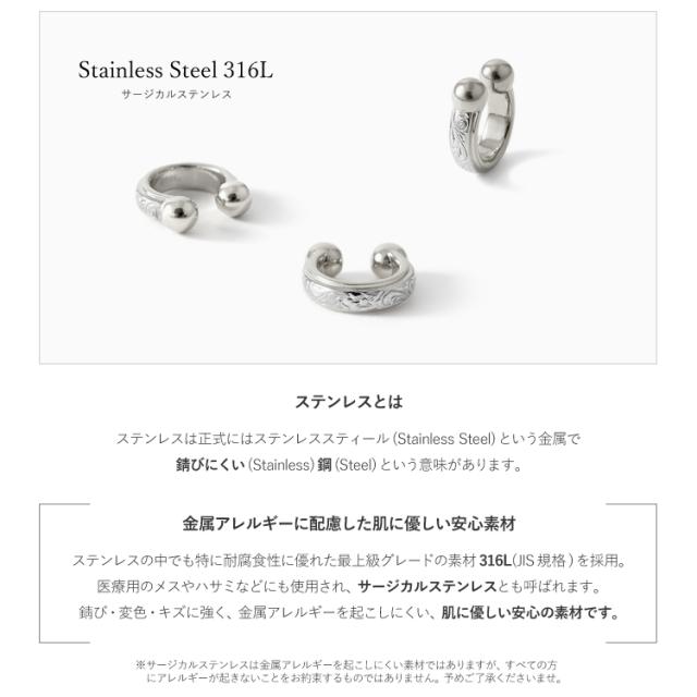 ※ステンレス316Lは金属アレルギーを起こしにくい素材ではありますが、すべての方にアレルギーが起きないことをお約束するものではありません。予めご了承ください。