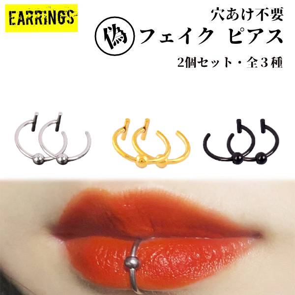 【玉つき】 リップ 鼻 口 フェイク シンプル レディース メンズ 穴あけ不要 フェイクピアス イヤリング カフ 2個セット アクセサリー シルバー ゴールド ブラック
