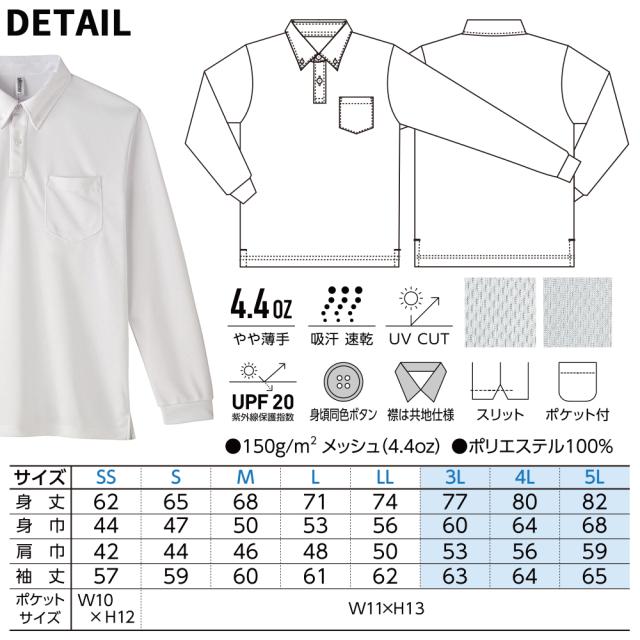 【商品名:4.4オンス ドライボタンダウン 長袖ポロシャツ(ポケット付き)】