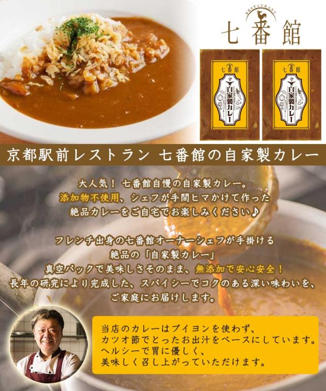 自家製 レトルトカレー 美味しい 京都 レストラン 七番館 大人気 カレー 店舗の味をそのままお届け 添加物不使用 おすすめ 温めるだけ スパイシー スパイス 胃もたれしない 冷凍保存 無添加 人気 カツオ 出汁 鰹 かつお 送料無料 ええもん ギフト 詰め合わせ