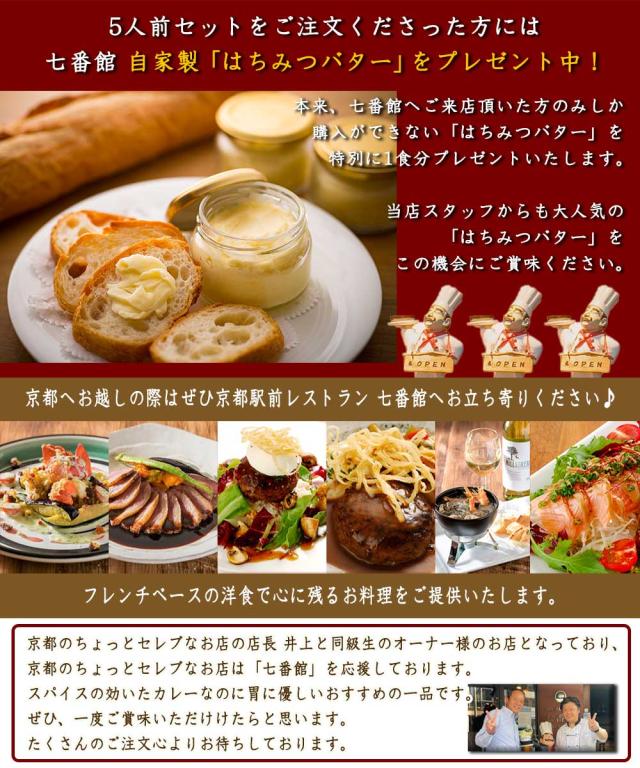 ●京都 駅前レストラン 七番館 自家製 カレー 5人前 + はちみつ バター おまけ付き 添加物不使用 レトルト カレー 詰め合わせ 送料無料 79632