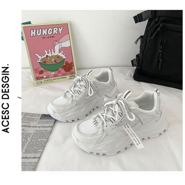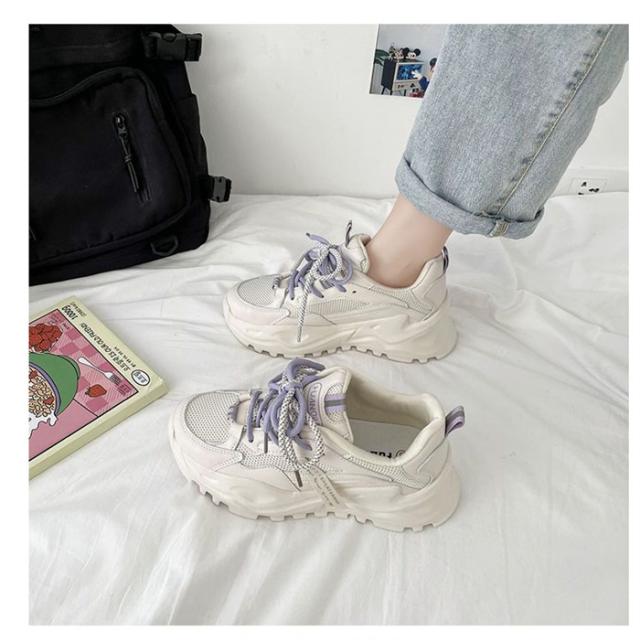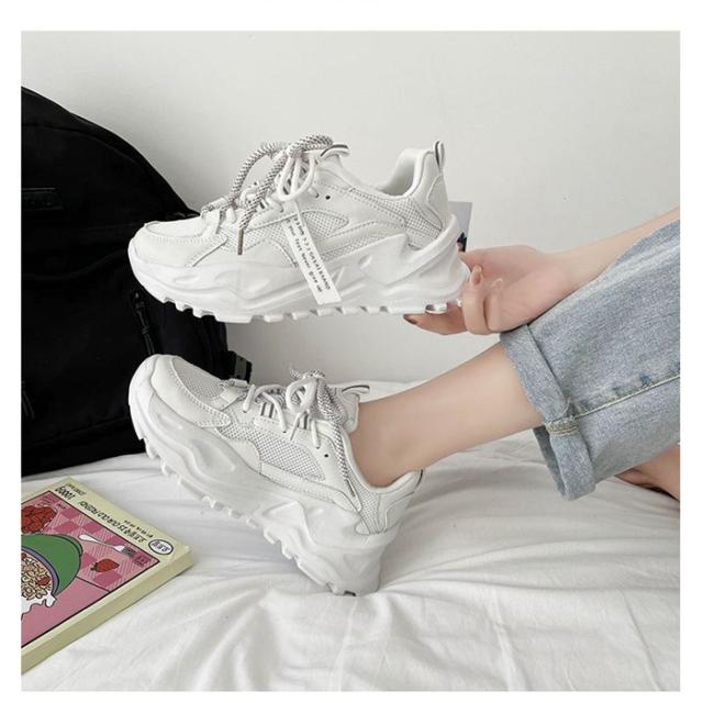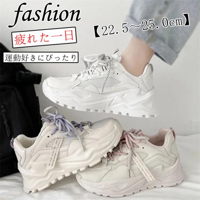 厚底 スニーカー ダッドスニーカー レディース ダッドシューズ ボリュームスニーカー インヒール 美脚 フラットシューズ カジュアル タウンシューズ レースアップ 滑らない 防滑ソールおしゃれ かわいい 婦人靴