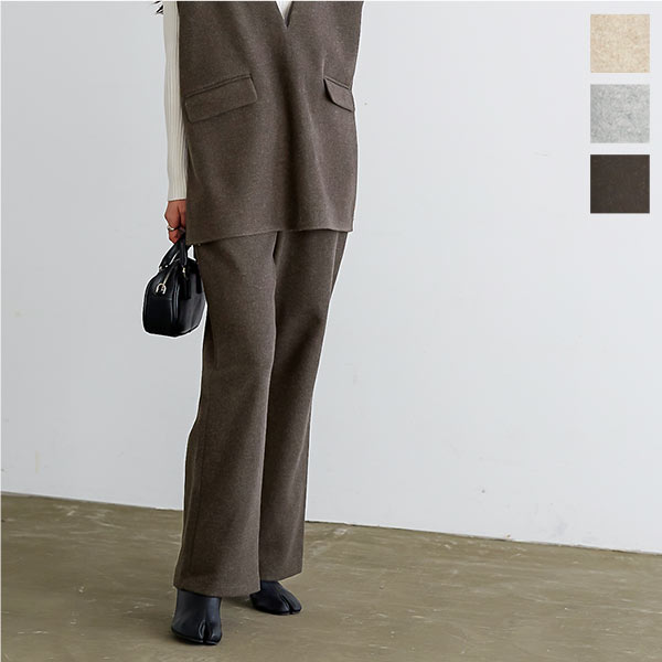 なめらかで上質なフェイクウール素材で仕立てたハイウエストパンツ。程よいカジュアルさと上品さを兼ね備え大人の抜け感を演出してくれます。同素材のベスト【C6455】とのセットアップコーデもおすすめです◎【素材・サイズ感】ウールの風合いやタッチを再現したフェイクウール素材。ウールのように暖かいのにピリングができにくのが特徴です。ウエストは全ゴム仕様で履き心地も楽ちん、シワもなりにくく日常使いにぴったりです◎※本商品とセットでお使いいただけるC6455において、製造時期の違いにより生地色にわずかな差異が生じている場合がございます。セットでのご購入をお考えの際は、予めご了承ください。※キャンセル/変更不可※お届けまでの日程について