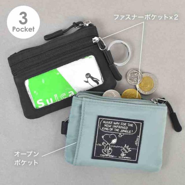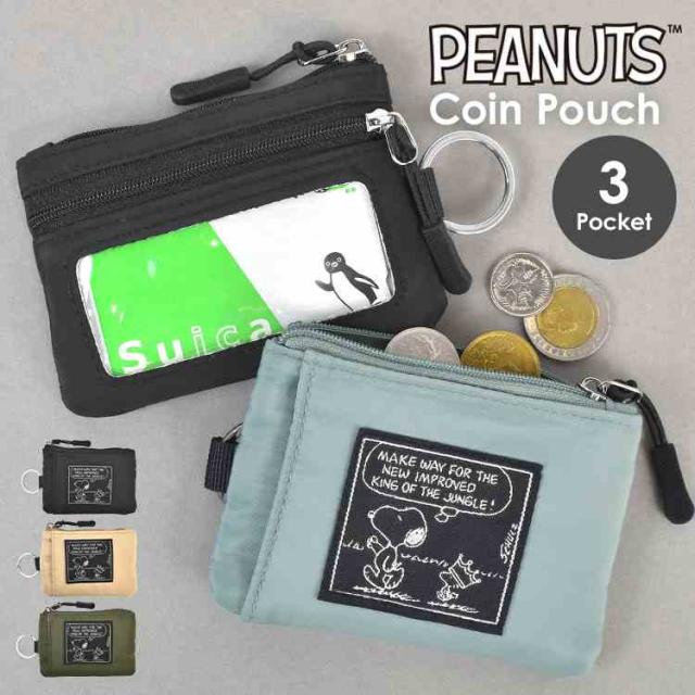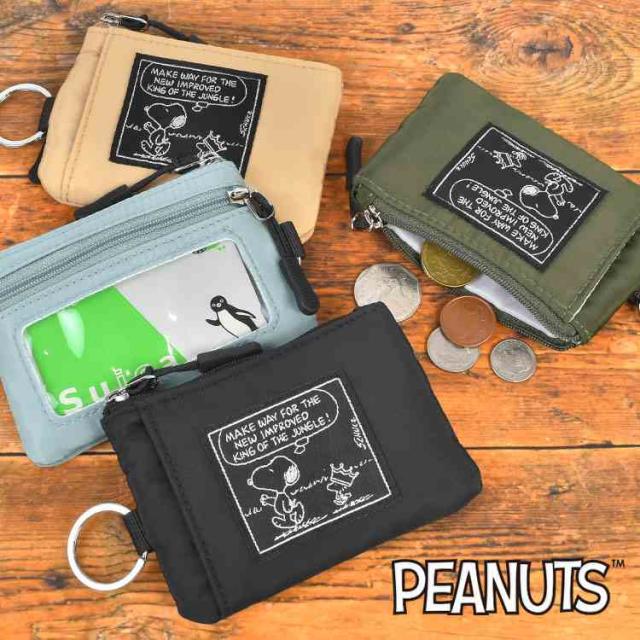 スヌーピー コインケース 小銭入れ カードケース SNOOPY 小物入れ かわいい おしゃれ 女性 コインポーチ ミニポーチ 女子 中学生 高校生 キャラクター パスケース ファスナーポーチ キーリング ICカード クリアポケット ブラック ベージュ カーキ ライトブルー 通学 通勤