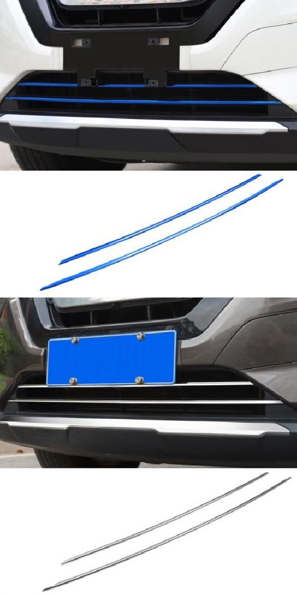 AL 2ピース 適用: 日産 ローグ 2017-2021 X-トレイル フロント グリル ステンレス スチール 装飾 ブルー・シルバー AL-PP-4679