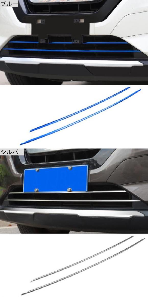 AL 2ピース 適用: 日産 ローグ 2017-2021 X-トレイル フロント グリル ステンレス スチール 装飾 ブルー・シルバー AL-PP-4679 カラー: ブルー シルバー