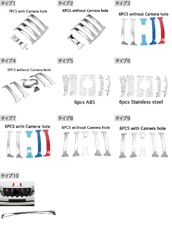 AL 適用: トヨタ プラド 2700 2010-2017 フロント グリル ストリップ INSECT ネット 3 色 グリル バー 装飾 タイプ5 AL-PP-5511 タイプ: タイプ5