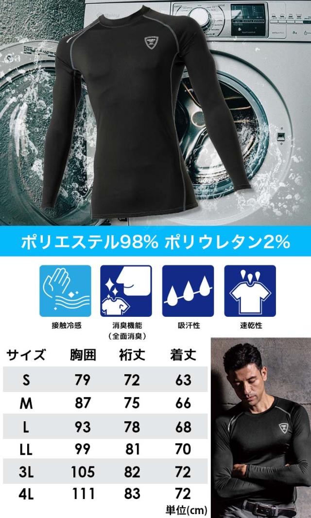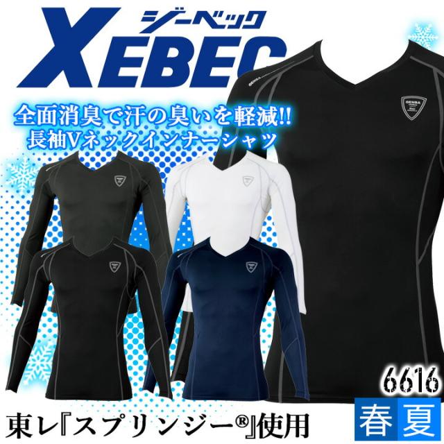 インナーシャツ 長袖 メンズ 夏用 接触冷感 ジーベック 6630 吸汗速乾 消臭 脇メッシュ 背中メッシュ ストレッチ アンダーシャツ 長袖シャツ コンプレッション 春夏 インナーウェア スポーツ 作業服 作業着 XEBEC【送料無料】