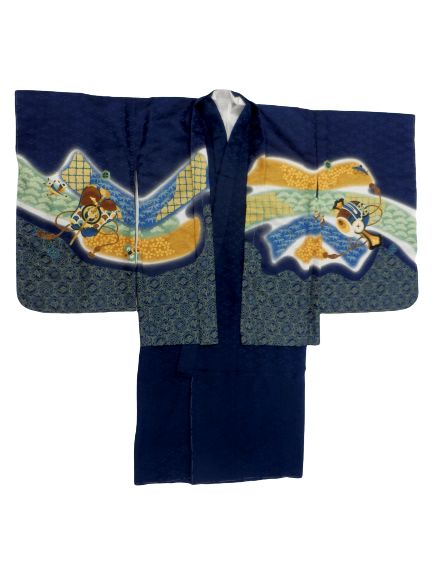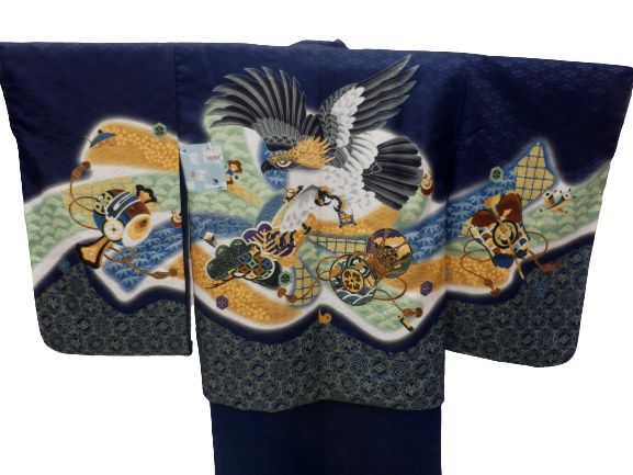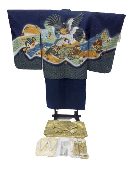 七五三 着物 羽織袴 5歳 男の子 袴セット 羽織袴セット 753 三歳 5才 男子 子供 キッズ 袴 羽織 10点 セット 七五三参り お正月 端午の節句 結婚式 入園式 和服 きもの 紺地 鷹 鼓 No.2223