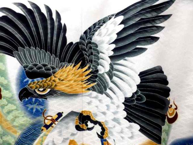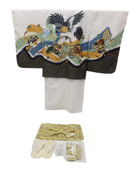 七五三 着物 羽織袴 5歳 男の子 袴セット 羽織袴セット 753 三歳 5才 男子 子供 キッズ 袴 羽織 10点 セット 七五三参り お正月 端午の節句 結婚式 入園式 和服 きもの 白地 鷹 鼓 No.2224