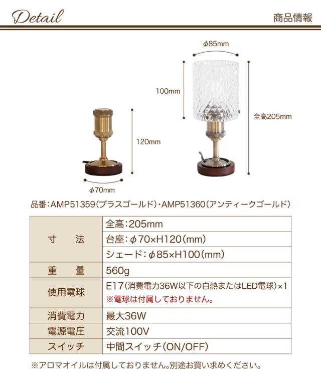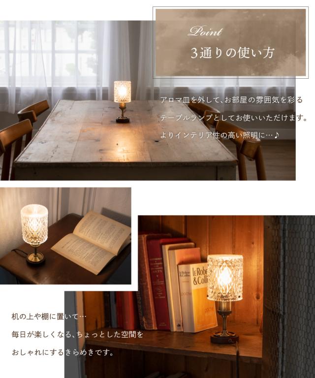 【Ampoule】テーブルランプ アロマランプ アロマライト 照明 おしゃれ テーブルライト デスクライト ガラス E17 1灯 寝室 ラグジュアリー アンティーク カフェ クラシック エレガント 照明器具 間接照明 ゴールド 真鍮 LED 高級 インテリア 燭台 Loie ロイエ ランプ