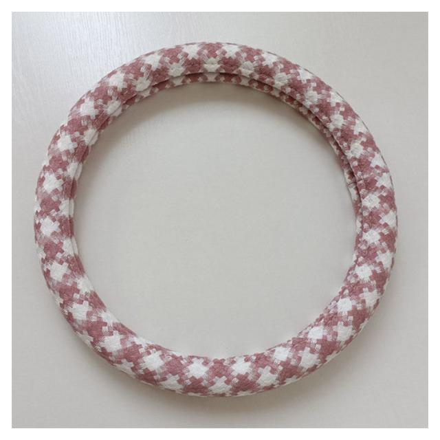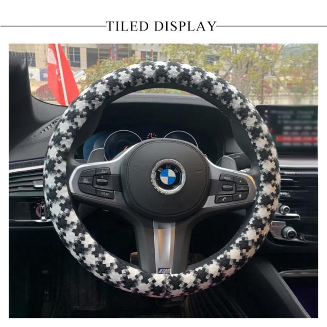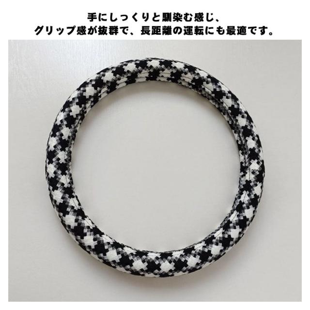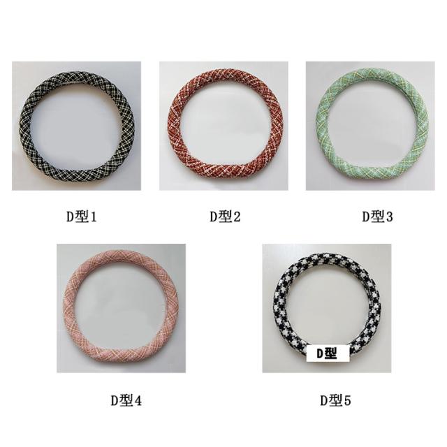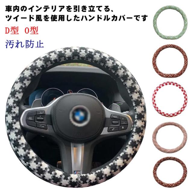 ハンドルカバー かわいい D型 ツイード風 チェック チドリ 汎用 ステアリングカバー 千鳥格子 普通車 軽自動車 O型 適合 ハンドル 新生活 兼用カバー
