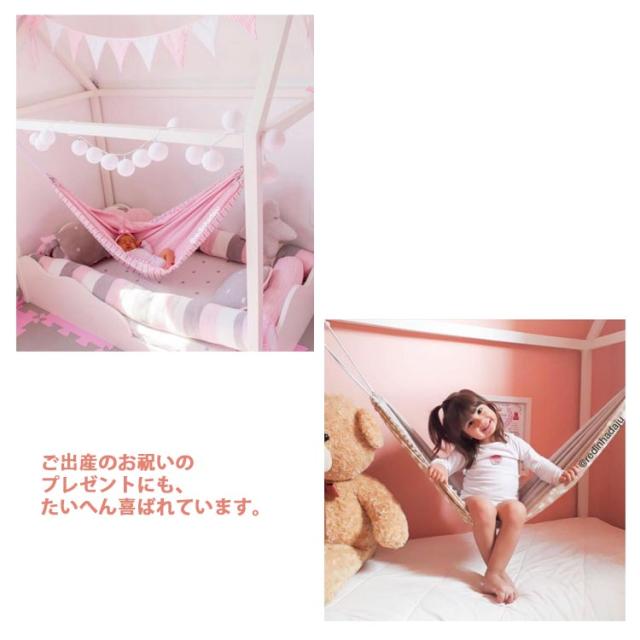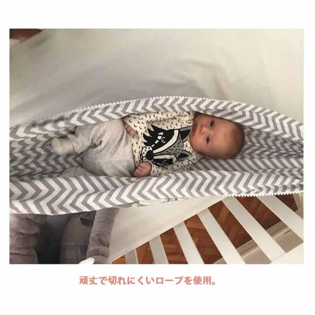 | ベビーベッドに取り付けて便利に使えるハンモック。 ハンモックに包まれて心地よい揺れで、赤ちゃんの夜泣き・寝ぐずりを落ち着かせ寝かしつけのサポートをします。 柔らかいコットン製でお肌にもやさしく、お手入れも簡単です。 頑丈で切れにくいロープを使用。 ご出産のお祝いのプレゼントにも、たいへん喜ばれています。 | |
