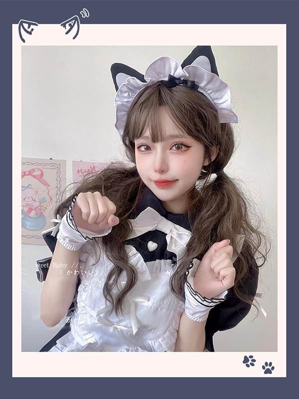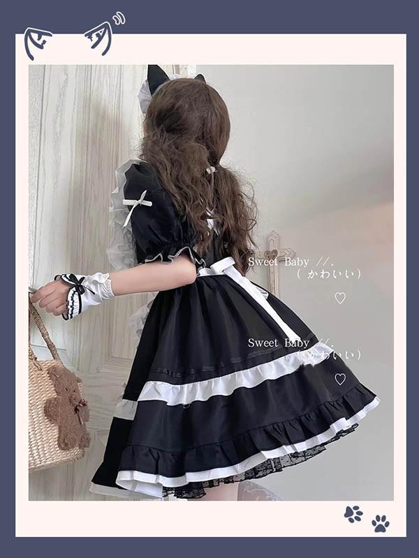 猫耳 メイド服 可愛い コスプレ衣装 5点セット メイド エプロン 大人 セクシー コスチューム ハロウィン コスプレ ウェイトレス ワンピース カチューシャ 女性 仮装 衣装 ゴスロリ 学園祭 文化祭 定番 オススメ イベント ブラック ホワイト aa012c9c9c9