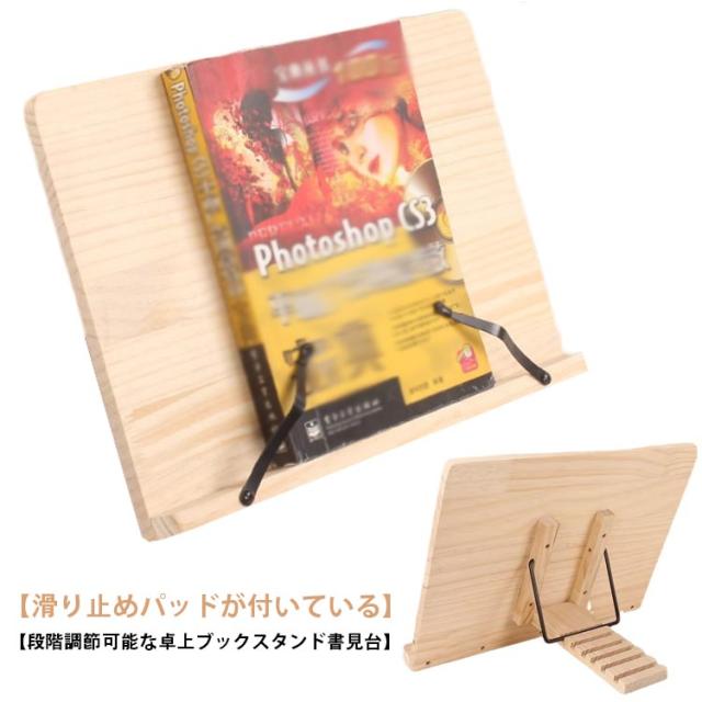 ブックスタンド 書見台 本立て 竹製 ノートPCスタンド パソコンスタンド 松木製 卓上 文具 画板 譜面台 楽譜スタンド 筆記台 タブレットスタンド 滑り止め 倒れない ブックストッパー クリップボード メモスタンド ブックホルダー