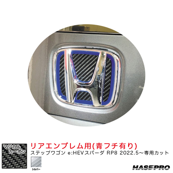 ハセプロ マジカルカーボン リアエンブレム用 ステップワゴン e:HEVスパーダ RP8 R4.5〜【シルバー(青フチ有り)】 CEH-27S