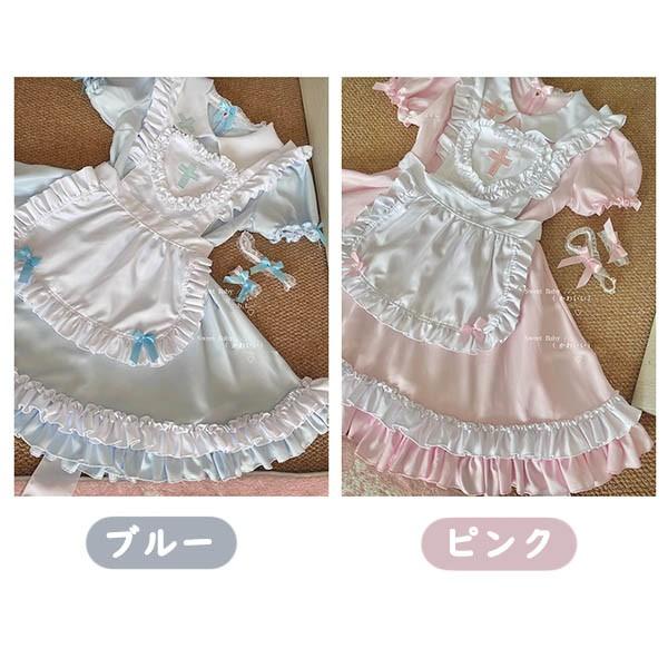 ナース風 メイド服 可愛い コスプレ衣装 5点セット メイド エプロン 大人 セクシー コスチューム ハロウィン コスプレ ナース ウェイトレス ワンピース 女性 仮装 衣装 ゴスロリ 学園祭 文化祭 定番 オススメ イベント ブルー ピンク aa010c9c9c9
