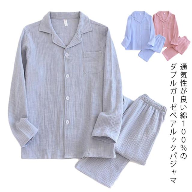 ダブルガーゼで涼やか パジャマ メンズ レディース ルームウェア 上下セット ペアルック カップル 夫婦 パジャマ 寝やすい ゆったり かぶるだけ ガーゼパジャマ ルームウエア 部屋着 ギフト ガーゼ コットン