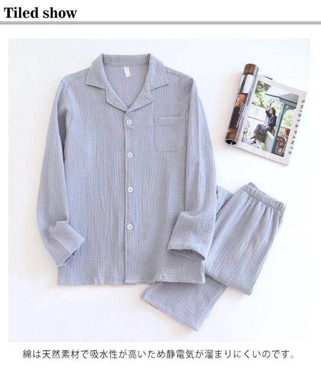 | 通気性が良いのダブルガーゼペアルックパジャマ 綿は天然素材で吸水性が高いため静電気が溜まりにくいのです。 とても微細な繊維のために、肌への引っかかりが少なく肌に優しいです。 洗濯を繰り返しても痛みにくく服が長持ちします。 結婚プレゼントや記念日ギフトで、春秋夏でも可愛いに演出。 恋人二人で一緒に着て、ラブラブ感が溢れている。 自宅用は勿論、父の日、母の日、結婚お祝い、お誕生日、記念日、敬老の日などのギフトにも最適です。 | |