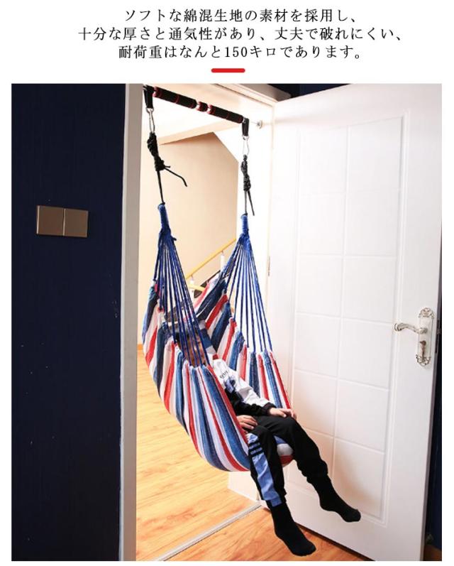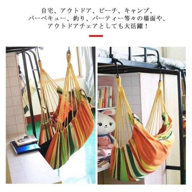 | 2個抱き枕+収納袋+3Mのロープ付きの帆布チェアハンモック。大人子供利用可能。室外室内◎! 椅子になったり、ソファになったり、お昼寝ベッドになったり、お尻の位置で様々な座り方ができます。 ソファー代わりにゆらゆら。ちゃんと背もたれがあるので長時間座っても全然疲れません。深く座れば足を延ばしてお昼寝ベッドに。 そのまま膝を立てて体育座りで座ると、不思議と安心感に包まれます!自分だけの世界に浸れますのでぜひお試しください。 ソフトな綿混生地の素材を採用し、十分な厚さと通気性があり、丈夫で破れにくい、耐荷重はなんと150キロであります。 自宅、アウトドア、ビーチ、キャンプ、バーベキュー、釣り、パーティー等々の場面や、アウトドアチェアとしても大活躍! 収納袋付きで持ち運び時に便利! | |