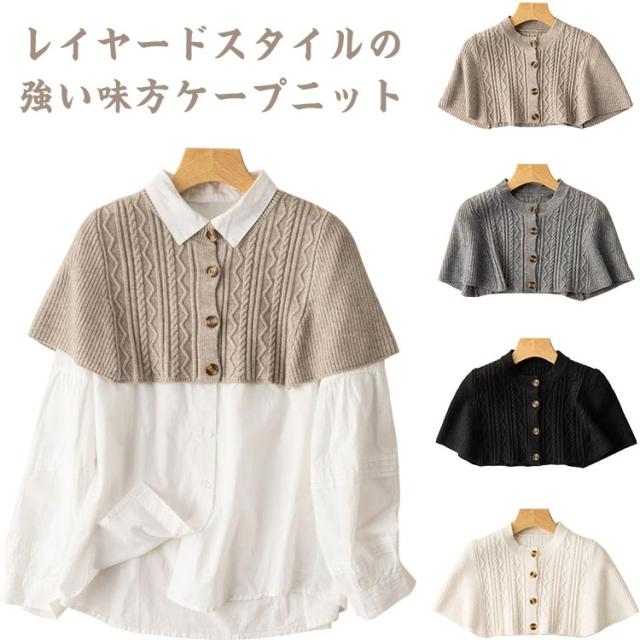 送料無料 カーディガン風 肩掛け ニット ニットトップス ケープ ベスト マント つけえり ストール ショール 薄手ニット レディース 羽織 冷房 肩巻き おしゃれ 冷房対策 エレガント ファッション 春夏秋 重ね着 可愛い きれいめ ショート丈 韓国ファッション
