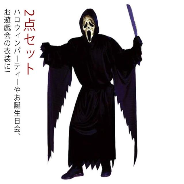 ハロウィン衣装 メンズ 死神 ハロウィン コスプレ 2点セット オールインワン+ベルト 死神 ロング マント フード付き ロングマント コスチューム ドラキュラゴーストマント お化け 余興 文化祭 演出服