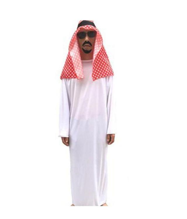 ハロウィン コスプレ アラブ ドバイ アラビア 商人 首長 3点セット 衣装+頭巾+髭 アラブの王子 砂漠の王子 アラブ服 中東 商人 石油王 男性用 メンズ 仮装 コスプレ衣装