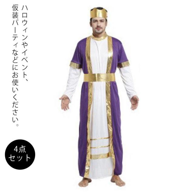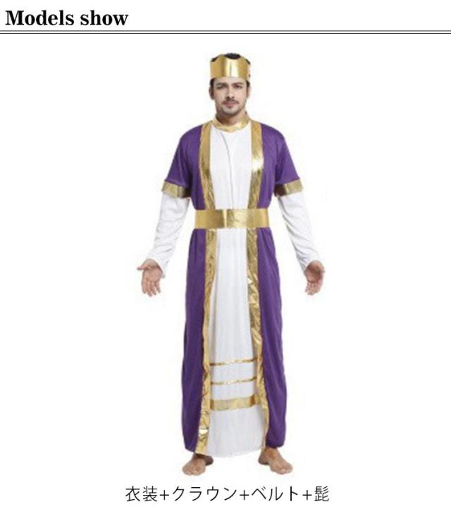 コスプレ King コスチューム メンズ コスプレ 衣装 4点セット 衣装+クラウン+ベルト+髭 貴族 宮廷装 ハロウイン コスチューム コスプレ衣装 変装 イベント パーティー 文化祭 演出服 Halloween