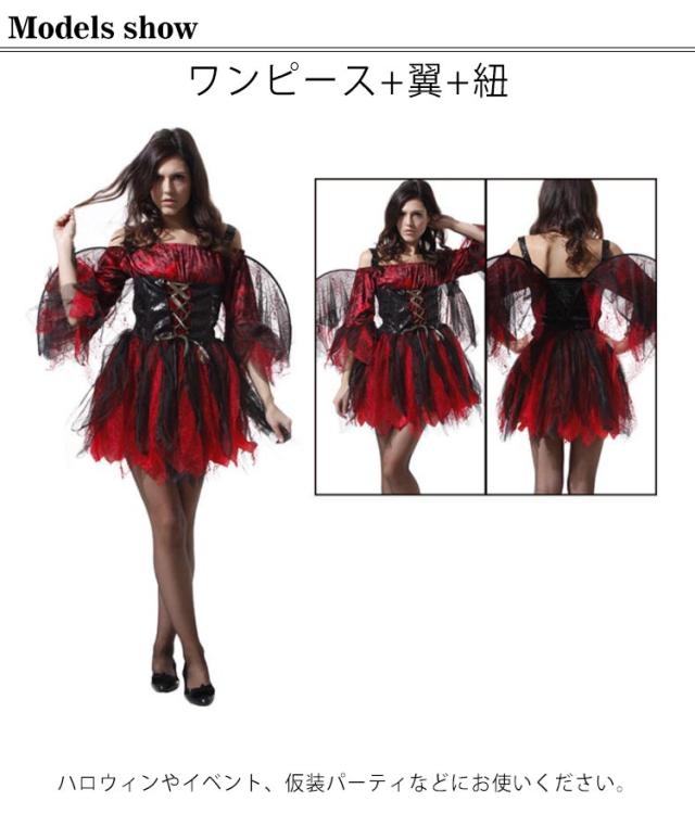 天使コスプレ ハロウィン Angel 悪魔 巫女 3点セット ワンピース+翼+紐 レディース 女性 大人用 ハロウィン衣装 仮装 cosplay costume おうちハロウィン コスチューム ハロウィン ダンス
