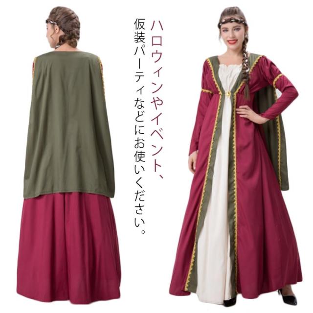 中世ヨーロッパ風 ドレス ケープ付きワンピース 復古風 西洋 レディース 大人 コスプレローズ ブラック ブルー 公演服 ハロウィンワンピース コスチューム コスプレ衣装