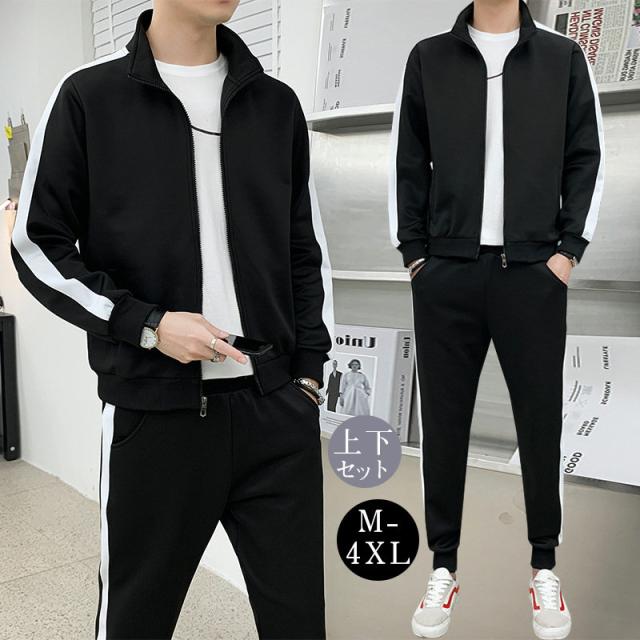セットアップ メンズ 長袖ジャケット 上下セット スウェットパンツ ジャージ 秋服 サイドライン 上下 ゴルフウェア 部屋着 大き
