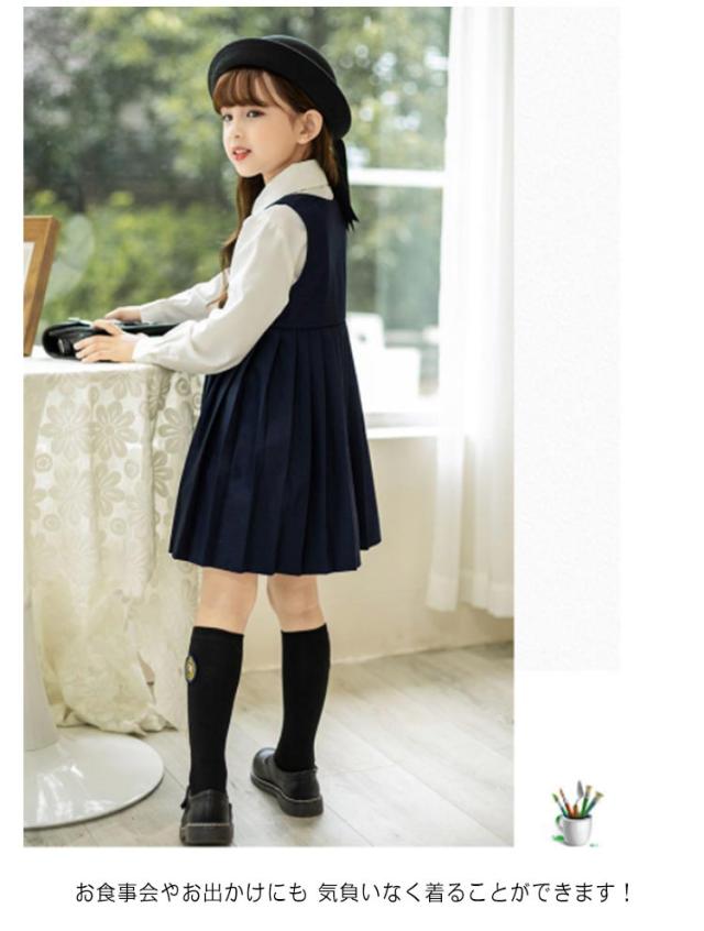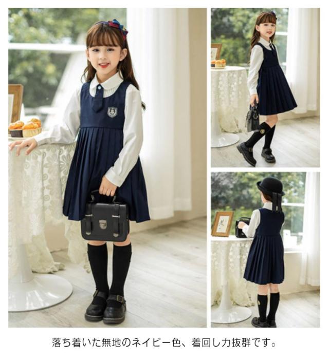 女の子 スーツ ワンピース 子供服 制服 春 秋 キッズ フォーマル セットアップ 3点セット 小学生 女児 卒服 入学式 卒園式 シャツ 結婚式 発表会 ネクタイ 長袖ブラウス 冠婚葬祭 可愛い 幼稚園 卒園式 受験 面接 濃紺 送料無料