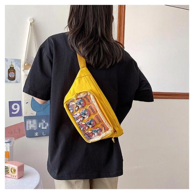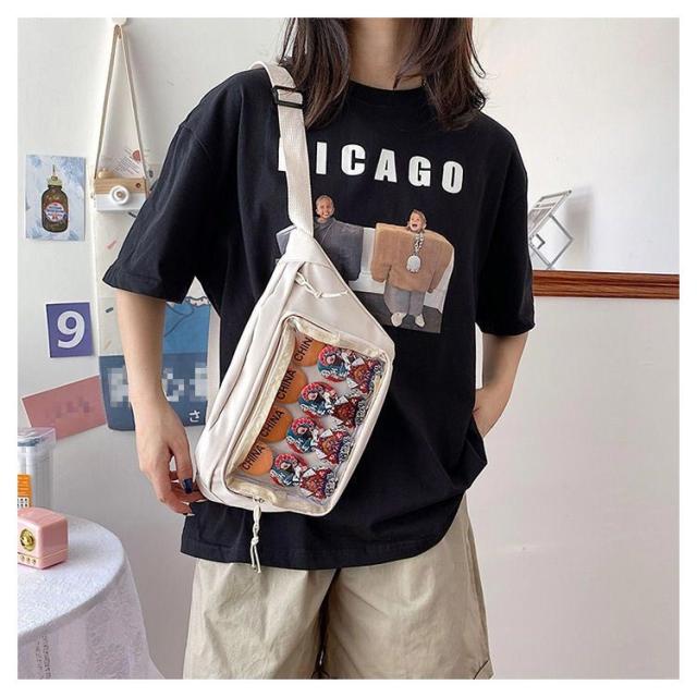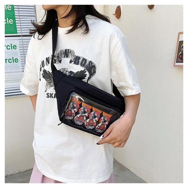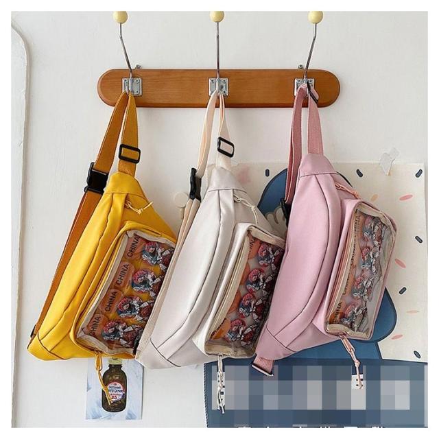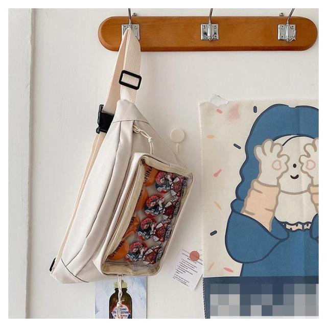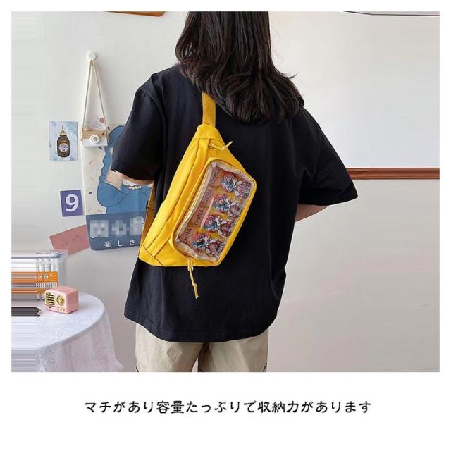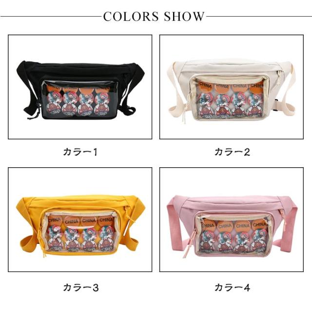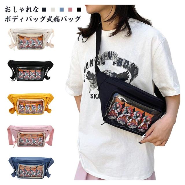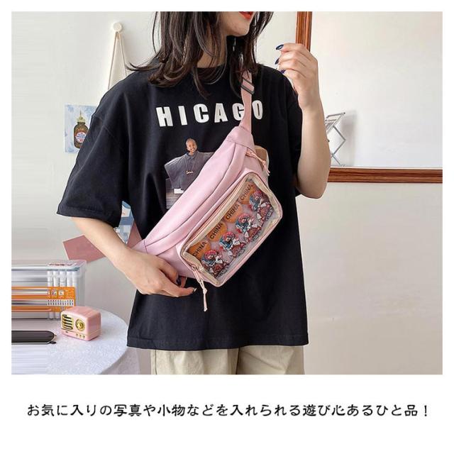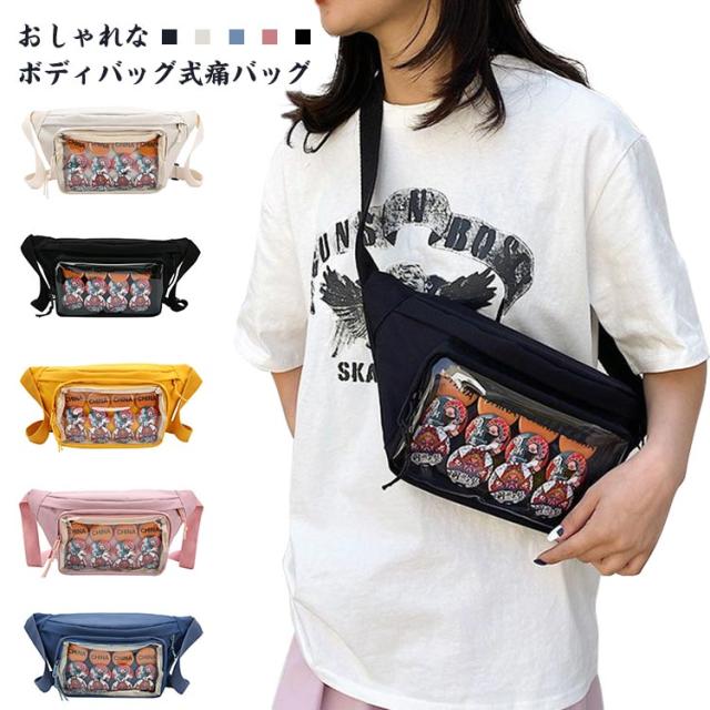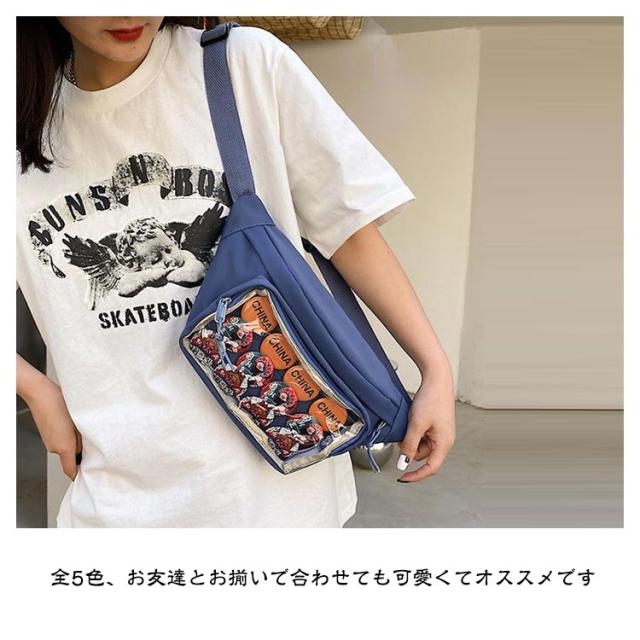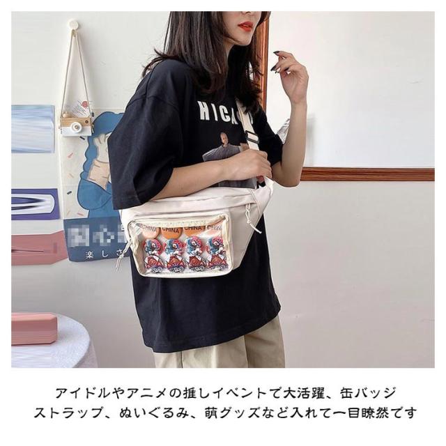 | おしゃれなボディバッグ式痛バッグ。 お気に入りの写真や小物などを入れられる遊び心あるひと品! アイドルやアニメの推しイベントで大活躍、缶バッジ、ストラップ、ぬいぐるみ、萌グッズなど入れて一目瞭然です。 マチがあり容量たっぷりで収納力があります。 全5色、お友達とお揃いで合わせても可愛くてオススメです。 | |
